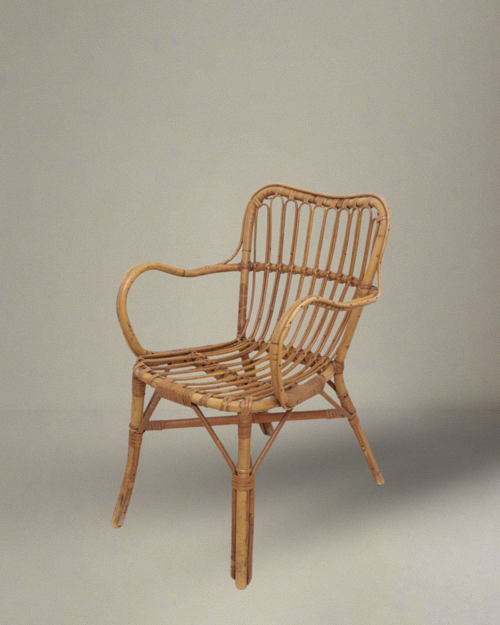 Sedia vintage in vimini - poltrona da pranzo in bambù e rattan - Florida Style - Made in Italy anni '70