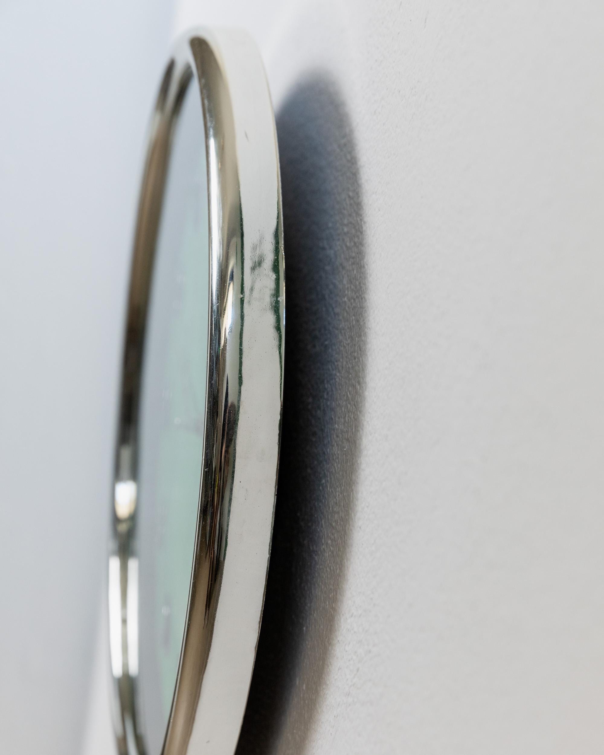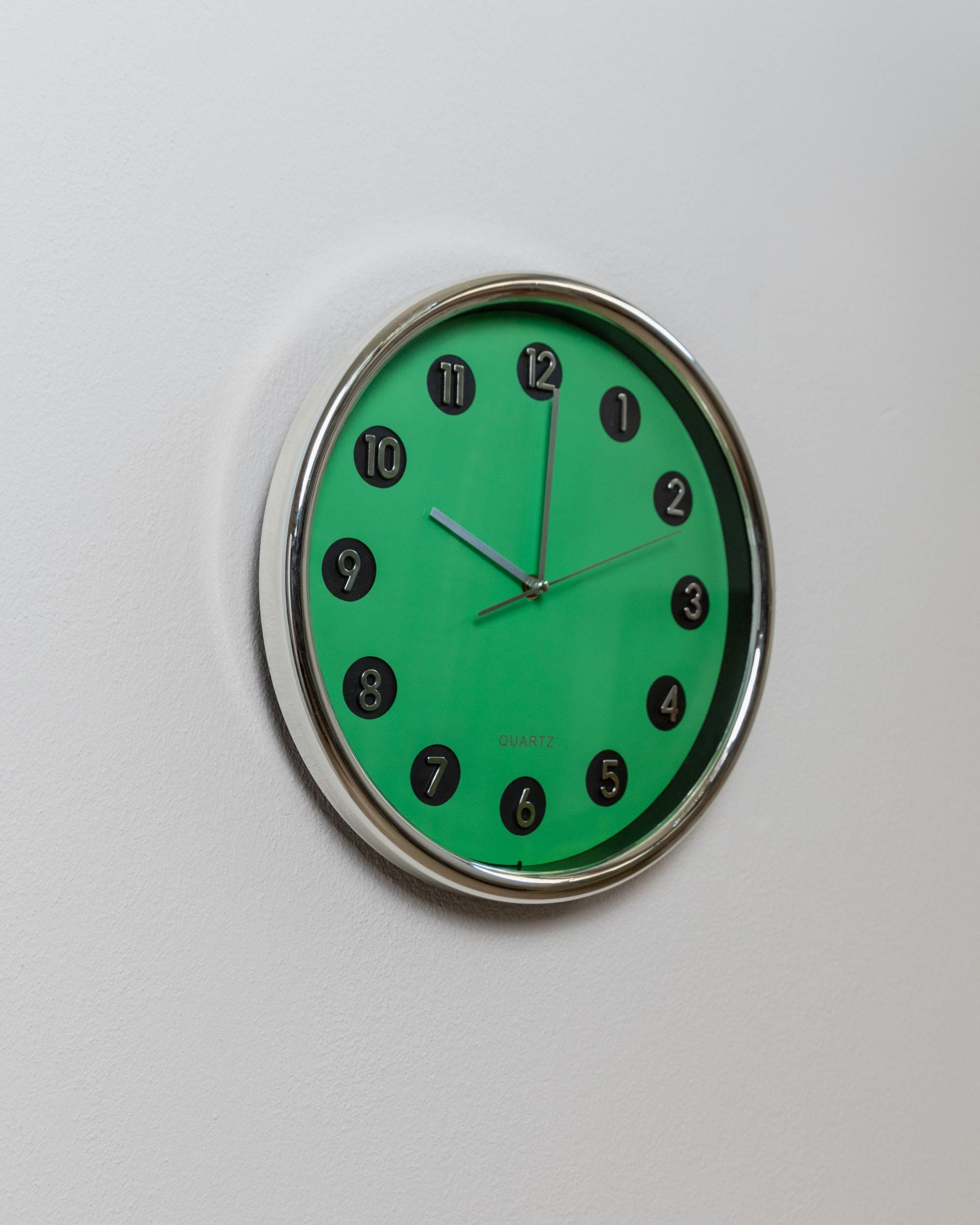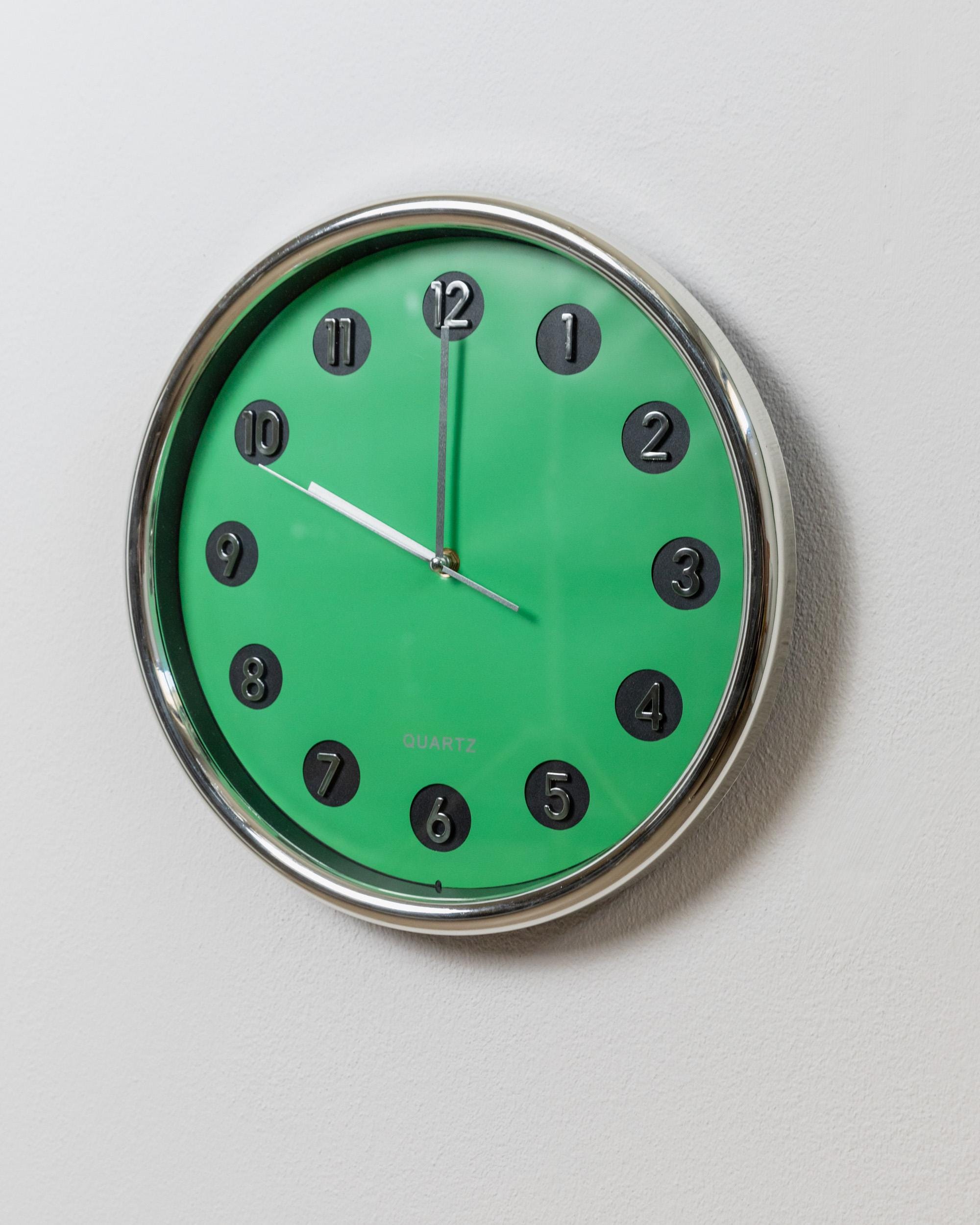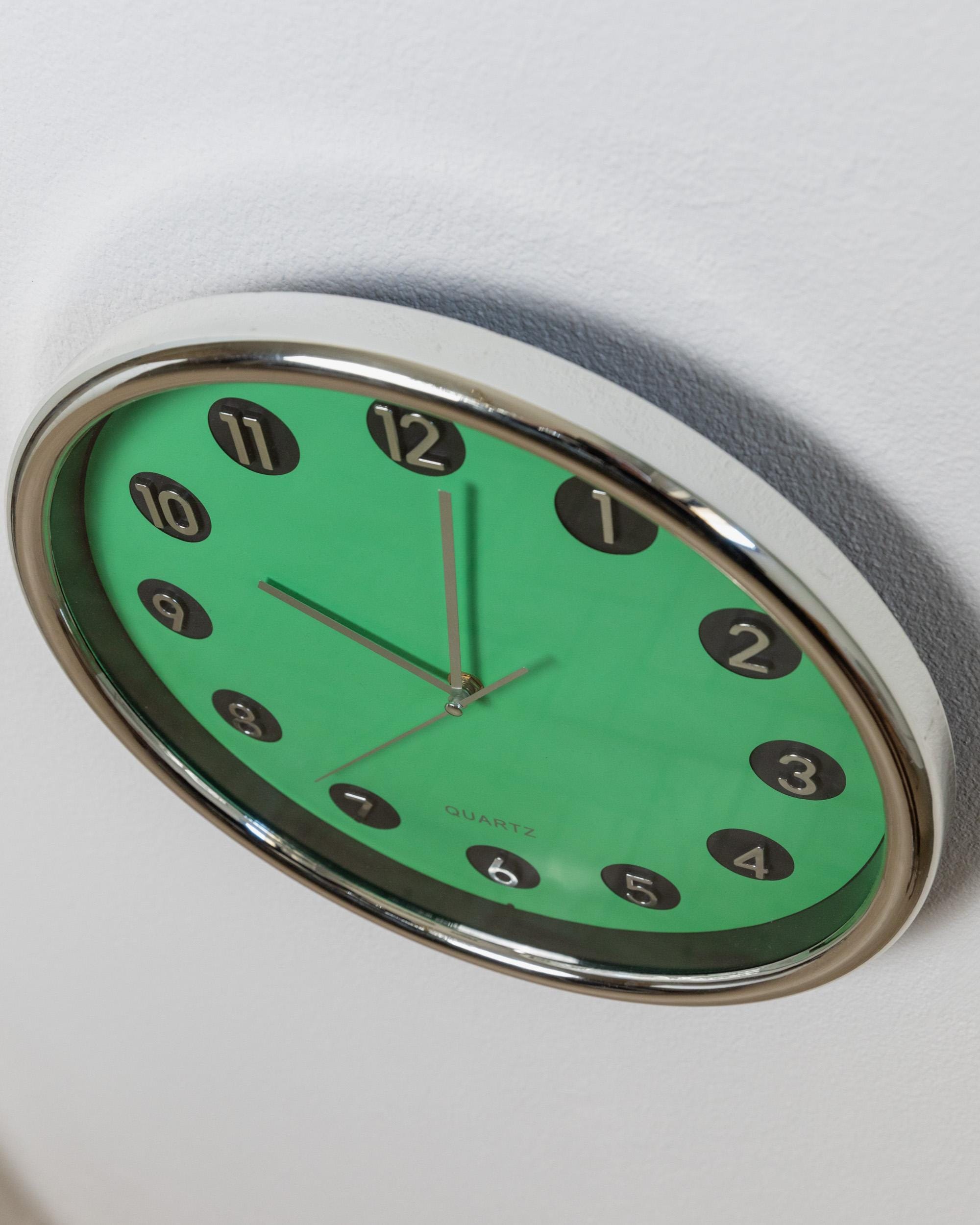 Questo orologio da parete vintage Space Age in verde presenta un design a papavero con dettagli cromati e numeri in rilievo, catturando l'essenza dello stile italiano degli anni '70. Il suo aspetto minimalista ma d'impatto, con numeri eleganti e un elegante bordo cromato, lo rende un pezzo accattivante per la tua stanza. Questo orologio non è solo funzionale, ma funge anche da audace opera d'arte murale.