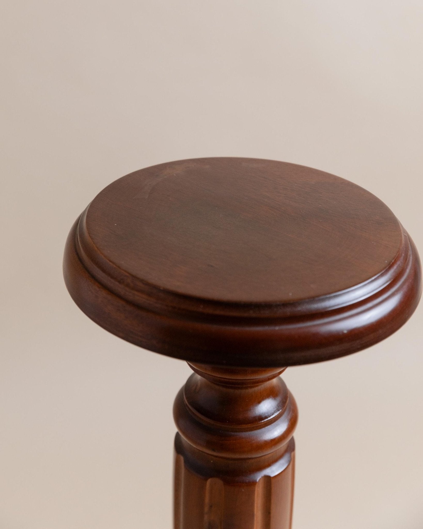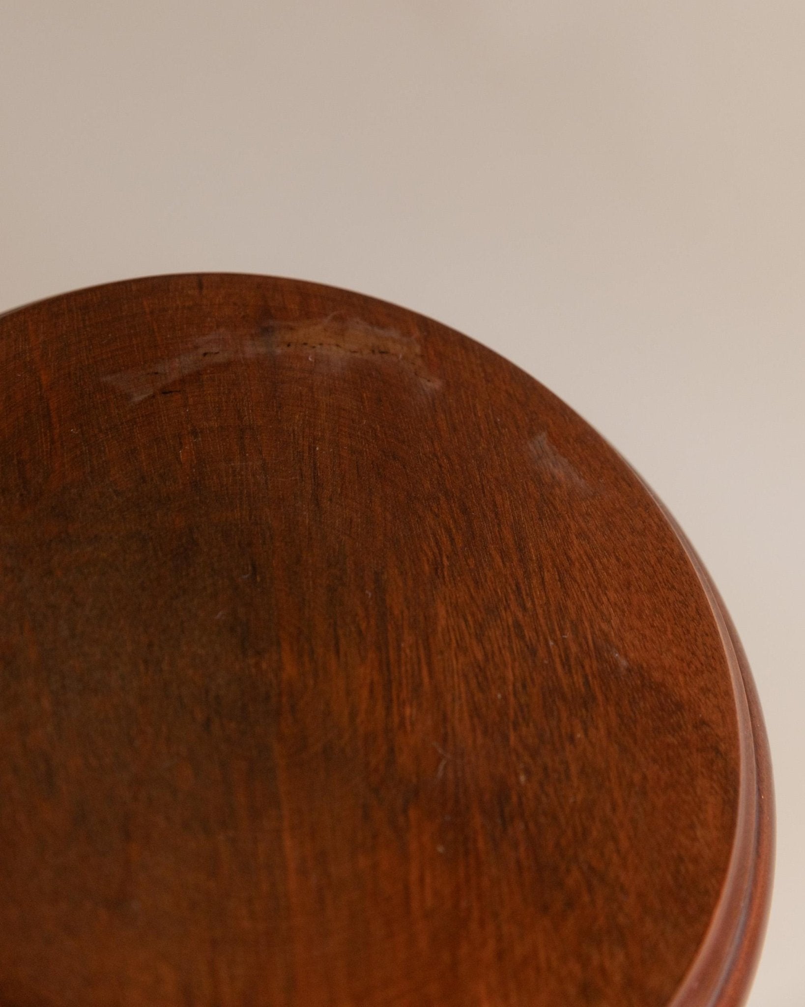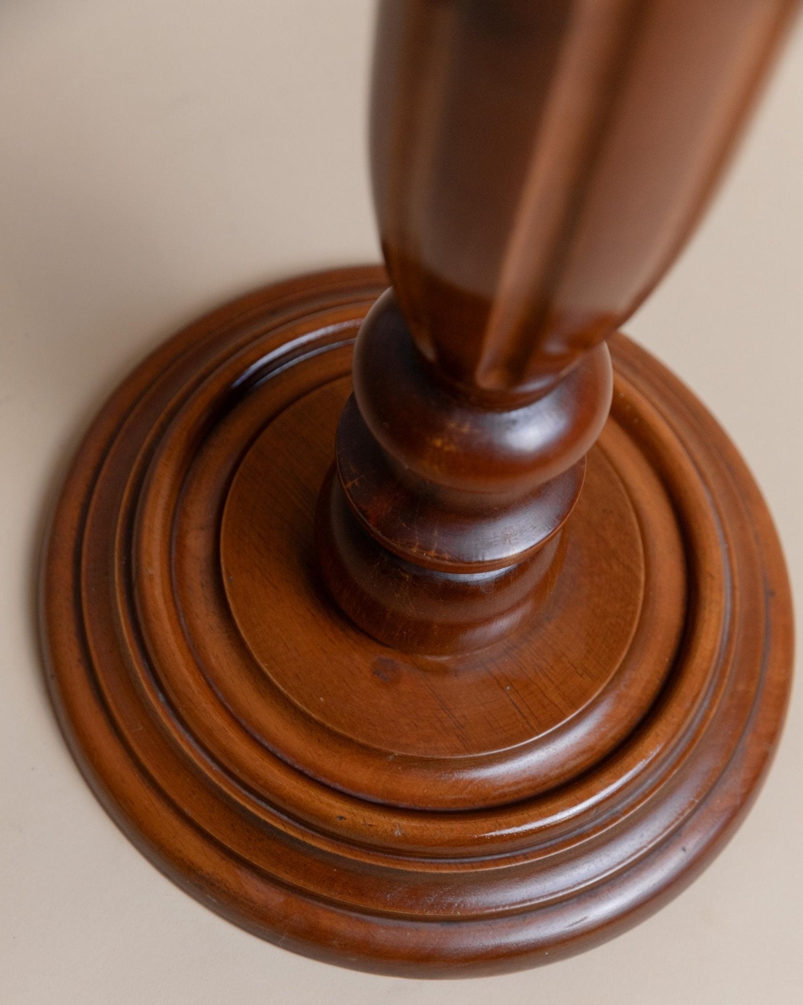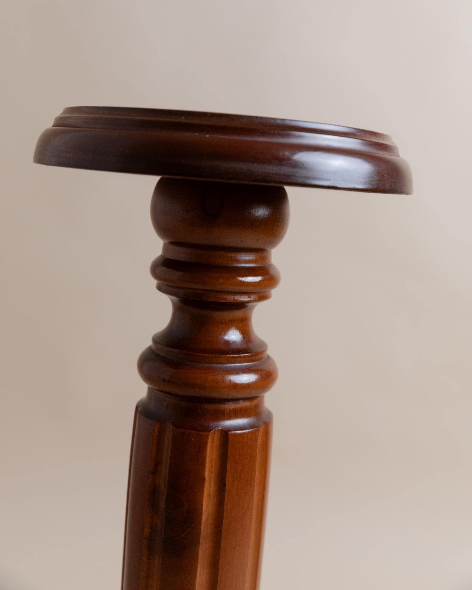 Questo portafiori vintage in legno degli anni '60 è stato realizzato artigianalmente in Italia con legno massello di alta qualità. Con la sua elegante forma a colonna, è perfetto per esporre con stile opere d'arte, piante o vasi. Il portafiori è adatto sia all'ingresso che al soggiorno ed è un'idea regalo ideale per gli amanti dei mobili decorativi e artigianali.